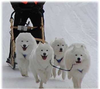Almost as purdy as that orange thing of Randy's, but probably a bit slower. These are 3/4s of the Magic Mist Samoyed Sled team.