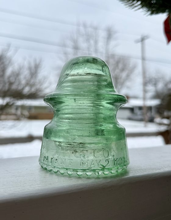 Hi all! Up for sale today is this nice milky lime green HGCo 164 with nice embossing and SDPs. Has a slight amount of haziness here in there, a few scattered pings, as well as one missing drip point and an associated bruise below the PET in petticoat on the reverse. All in all a nice colorful 164. For more pictures email me! How about 170 shipped on this one. |