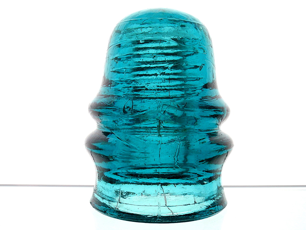 Classic telegraph in a DARK BLUE! Unembossed with the dot in the pinhole top. Two side crown matchead pecks and the base chipping you see in pic # 2 is the damage report. $ 130.00 includes shipping.