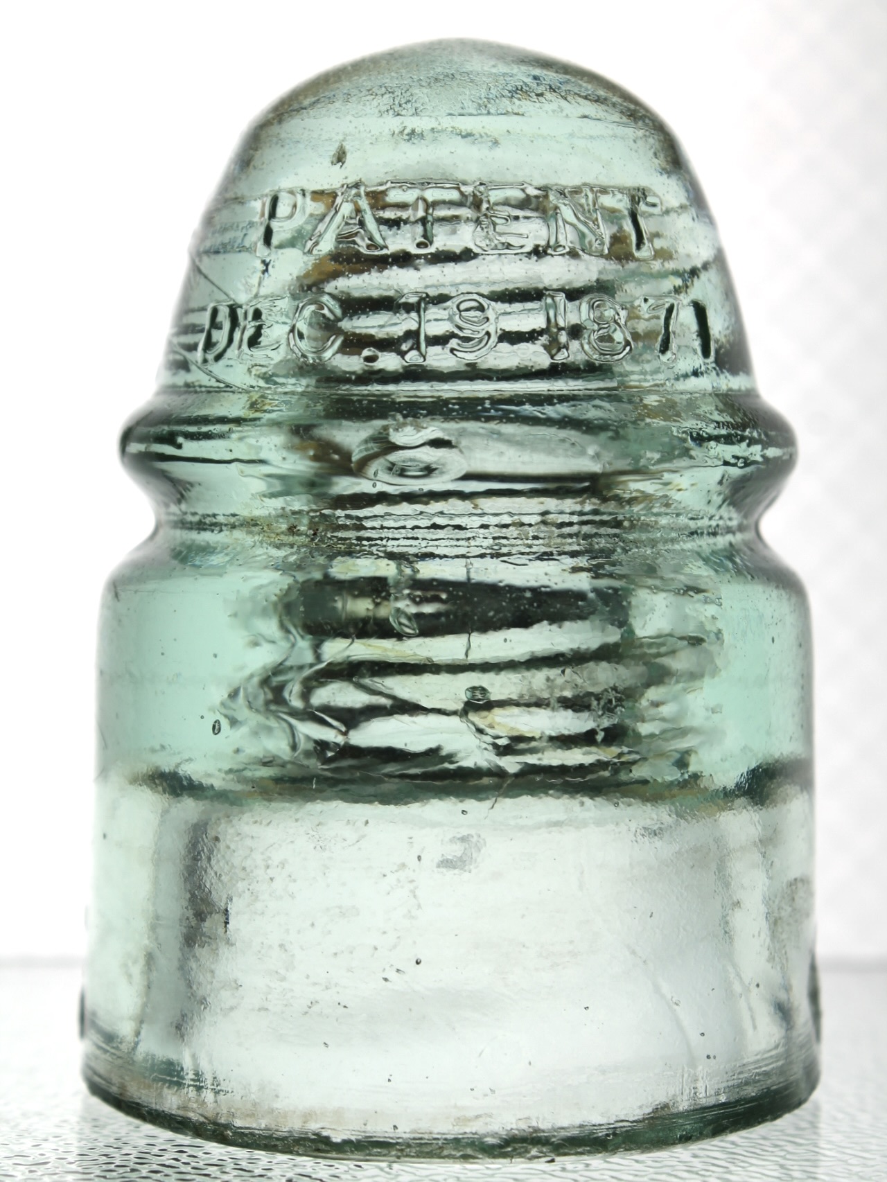 This rare light green CD 124.3(030) crown is embossed PATENT/DEC. 19,1871. Reverse crown has a 4 and on skirt is C and it has a SB. Has a small fishtail flake at front wire lip, 1/8" short scratch an inch away on the lip and a 1/4" wide nibble on the reverse of the same lip. There is a 5/8" long flat shallow base chip and a tiny needle peck on the rev. crown. Pinhole is perfect. Book shows $400-500, this one for $300 with free shipping. Email for more pics. Accepting PayPal(f&f), Venmo or check (delay delivery for it to clear). Thank you. |
