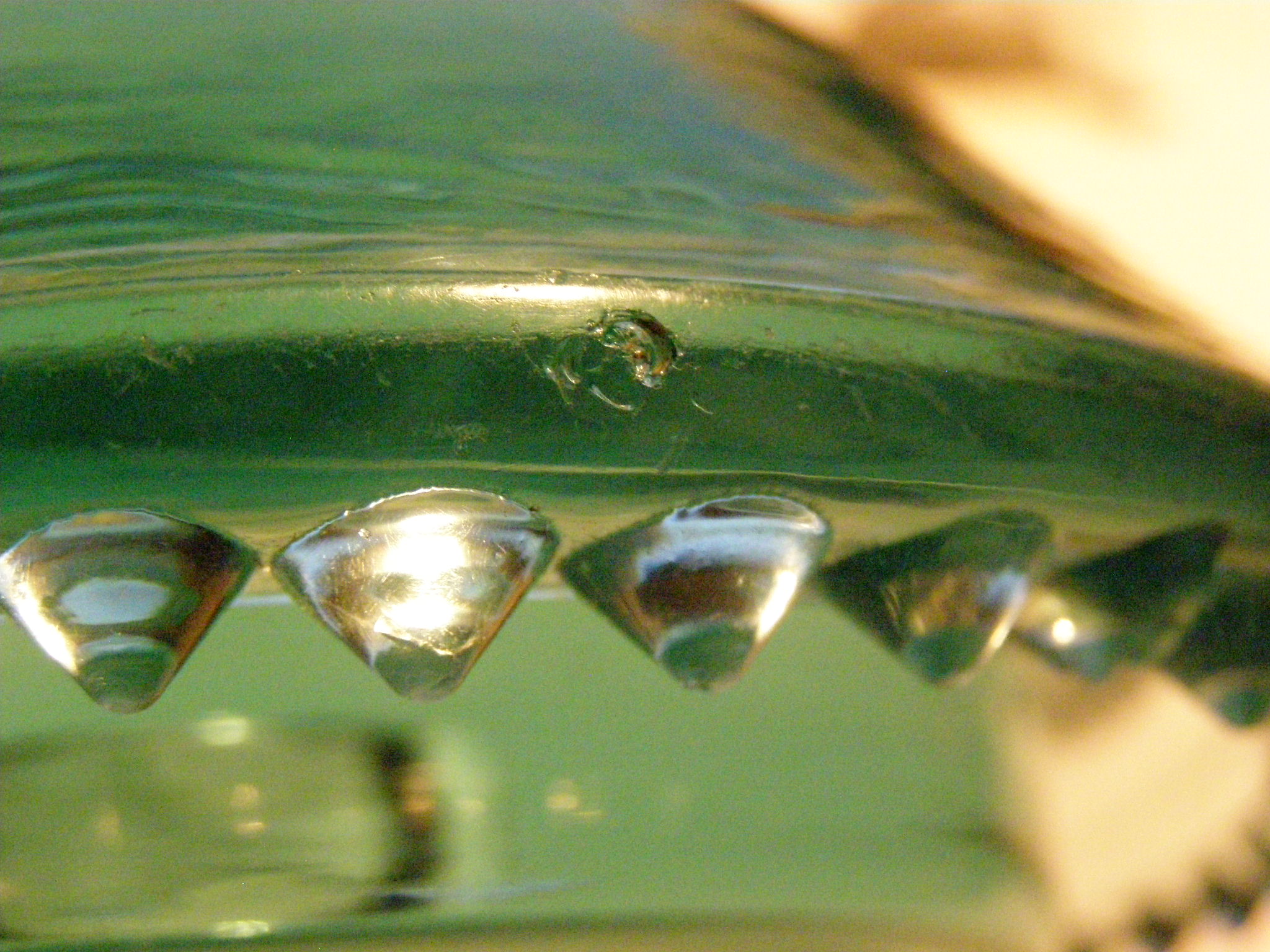 Light aqua battery rest. (F-Skirt embossing) HEMINGRAY (R-Skirt embossing) PATENT MAY 2 1893. That is the patent date for Drip Points (Patent No. 496,652). No CD number has been assigned to this yet. 6" x 1 ⅞" (152mm X 47mm). Fat drip points. Top wear and bottom wear. 4-3/4" chipping on on the outer skirt., 2 other chipped drip points. One of these other chipped drip points has an associated 3/8" x 1/8" chip on the outside edge. 1/8" flake on the outside edge. The one I own has about the same amount of damage $2000 postpaid. Seven of these are known and the other six are locked in collections that will be there for many more years. Hemingray battery rest, no CD assigned yet, $2000 postpaid. NOTE: I revised this listing shortly after posting it to note some additional damage.