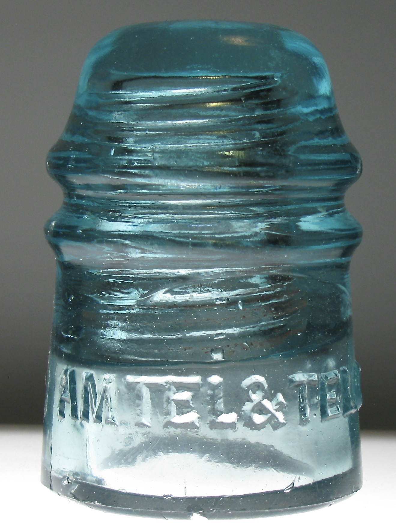 Here's a rather scarce CD 121 AM TEL&TEL Co- insulator made by Sterling (has the Sterling ring inside the top of the pinhole.) This beefy toll has the largest embossing known for AM TEL insulators and this example has very bold embossing to boot! Comes with an unusual raised dash after the "Co". This is only the 2nd example I have found in over 30 years of collecting. Insulator is easily VNM condition. Has a tiny dome sliver/tic mark and light upper wire groove nick beside a tiny nibble and a very tiny tic mark below the A in the prismic embossing. (Click photos to enlarge details). 2 very tiny pings size of a tic on the left mold line. Very tiny flake on the "L" in the embossing. A few factory annealing lines on the base that are not damage (similar to denver and california insulators). See additional photos posted. First email gets this scarce toll for only $75 plus shipping. Will be securely wrapped for shipping and arrive before Christmas if you order soon. Thanks! |
