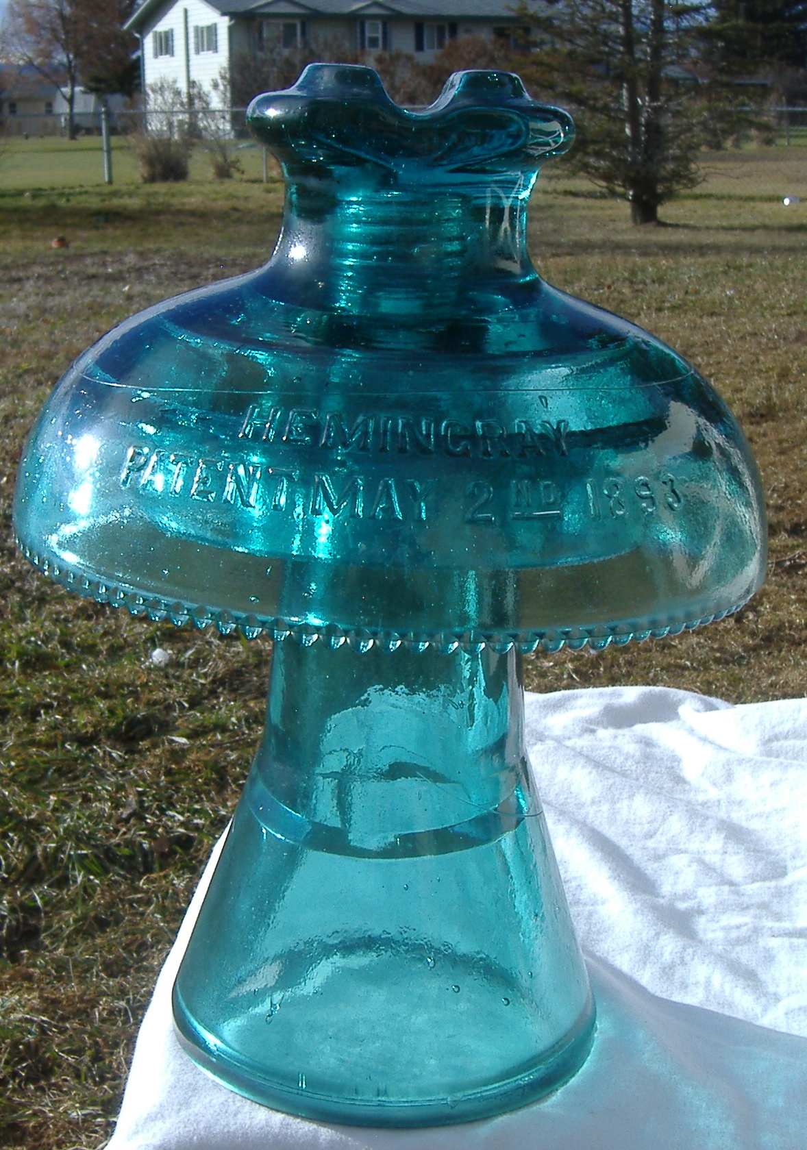 This insulator is a CD 303 top and CD 310 base that is known as a Muncie. The insulator is in very near mint condition with only one drip in the back with a flake off it and 2 drips with open bubbles in the tips. This one has really nice bold embossing. Priced at $180.00 plus USPS Ground Advantage shipping cost. (around $30.00).Thanks. |