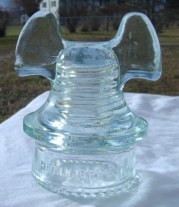 This insulator is a CD 257 Mickey Mouse insulator with a wide groove. It is an ice aqua color. The insulator is in very near mint + condition with only a tiny peck mark on the front flange and some tiny nibble flakes on the edge of the pinhole. A very nice displaying piece. Priced at; $65.00 plus USPS Ground Advantage shipping cost. Thanks. |