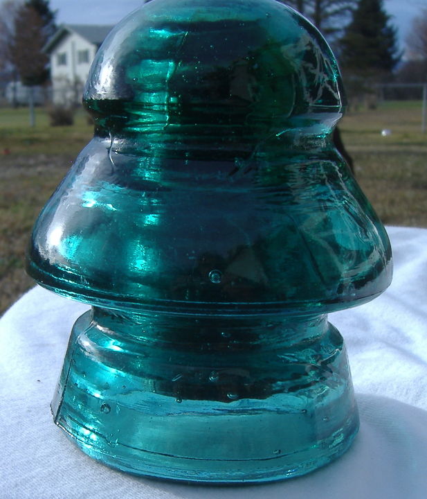 This insulator is a CD 190/191 embossed ; P.R.R. on the dome top and; B on the base skirt. It is a dark aqua color with an amber swirl in the top. The PRR embossing is nice and bold. The insulator is in very near mint + condition with no chips or cracks. It comes with a pin to hold it together. This is a very nice tramp with character. Priced at; $125.00 which is low book plus USPS Ground Advantage shipping cost. Thanks. |