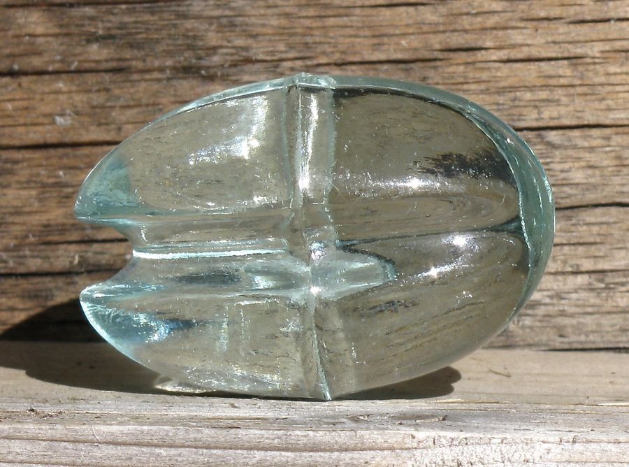 Here's a small Light Aqua glass compression strain from Italy. This CD 1145 insulator has several scattered very tiny tics or pings and 1 small flake. Displays great!