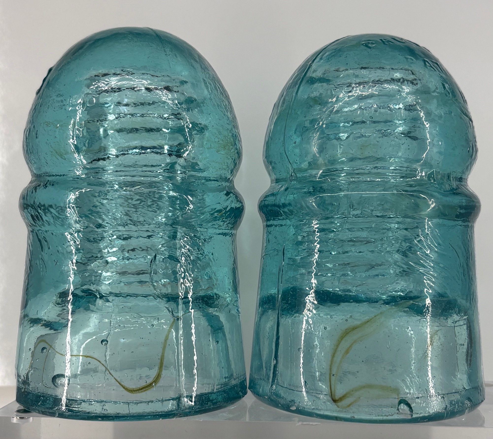 Two 126.3's with some nice snotty stringers in the skirts. The one on the left has a small chip and open bubble on the base, the other is VVNM. $30 plus shipping for the pair.