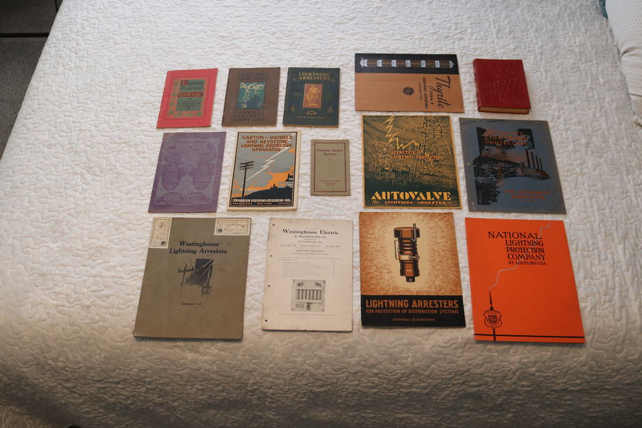 These are arrester sales Brochures from General Electric, Garton Danials, Westinghouse, E.S.S.Co., National Lightning Protection Co.and Autovalve info too. Dates range from 1899 1900,01 and 02 abd some that were reprinted in 1917 as well as a few more current hand outs. Not modern reprints but originals and good luck finding them again; anywhere. Have listed only a few pics so not to clog up the sales site. can email some more pics if you need. Asking $65.00 plus shipping and as usual, first yes gets em. |
