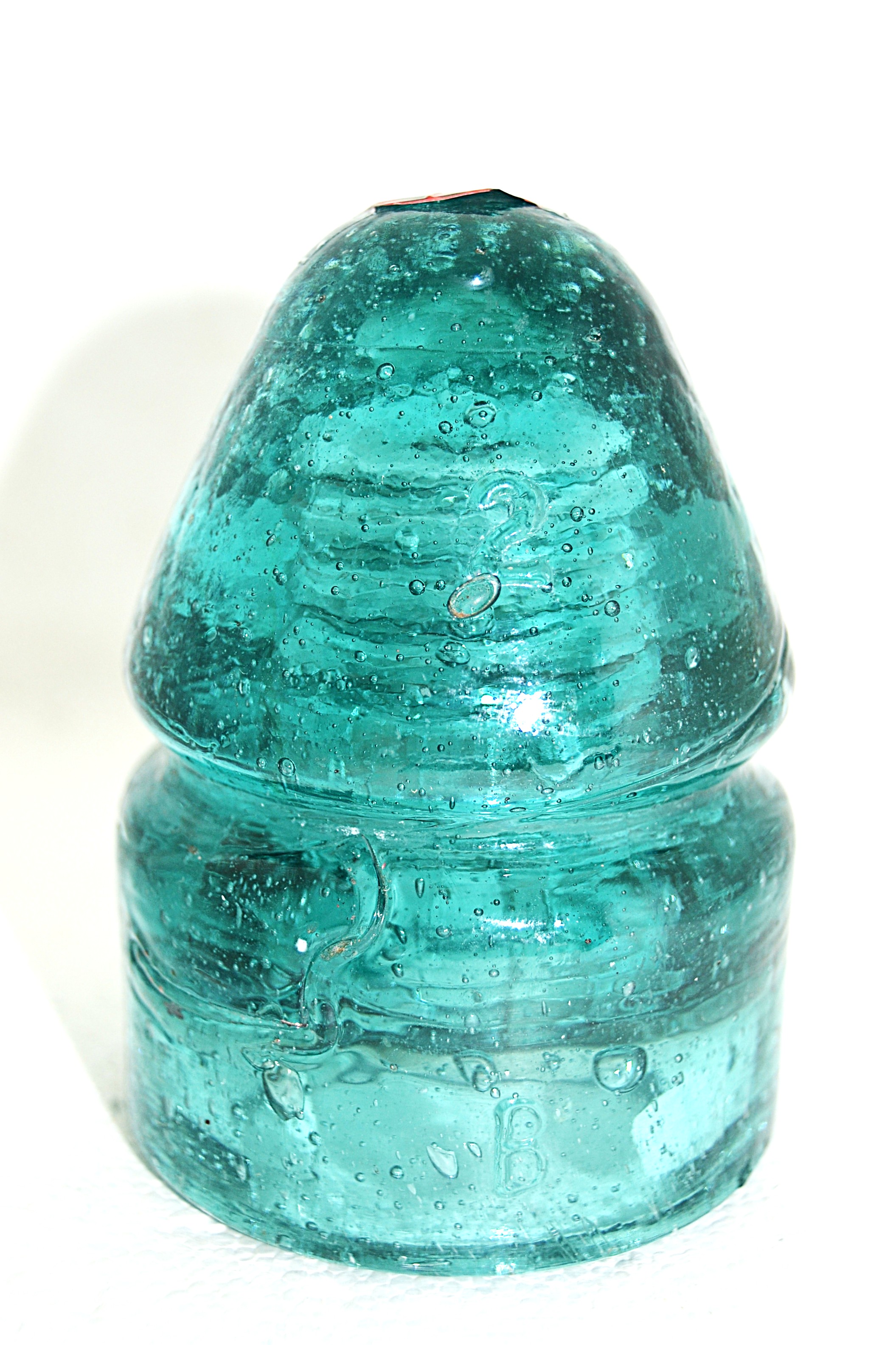 Listed is a CD 132 embossed 2 on crown and B on skirt and reverse side embossed on crown Pat. Dec. 19 1871 - SB - Insulator has a pot stone bruise on lower wire rim and extends down skirt and small ding above bruise. - Nice air bubbles - I'm calling the color a lite teal - Asking $195 plus shipping - Two other pictures added. |