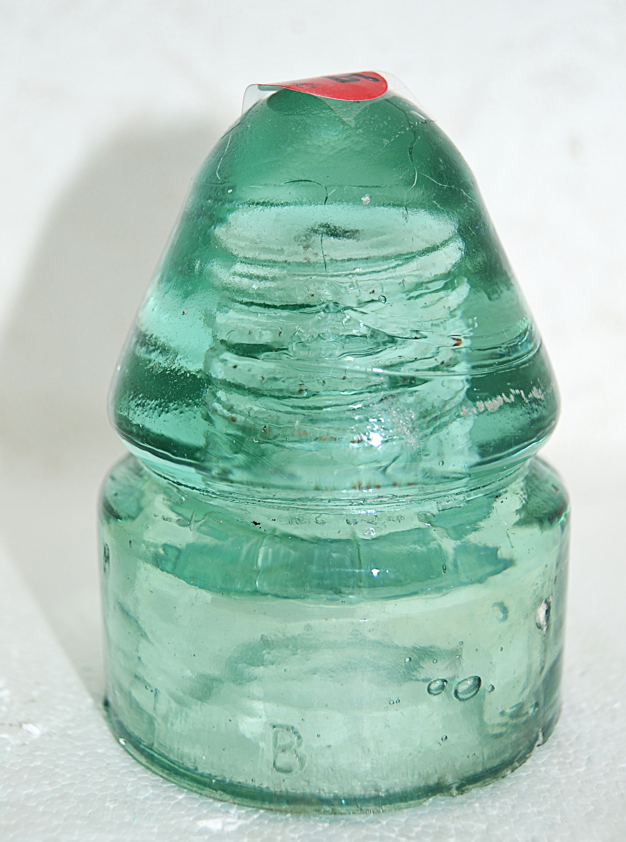 Listed is a CD 132 embossed 2 on crown and B on skirt - reverse side embossed on crown Pat. Dec. 19 1871 - Small BB ding on side skirt and some base flaked (picture 3) Calling color a light green to green aqua. Asking $58 plus shipping. Two other views listed. |