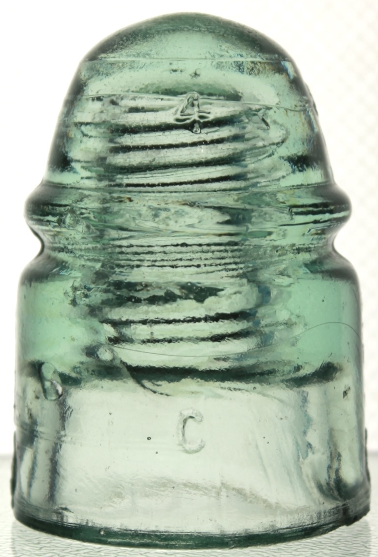 This light green CD 124.3(030) crown is embossed PATENT/DEC. 19,1871. Reverse crown has a 4 and on skirt is C and it has a SB. Side view of the piece reveals a small string of amber in the front glass. As evidence of use it has a small fishtail flake at front wire lip, 1/8" short scratch an inch away on the lip and a 1/4" wide nibble on the reverse of the same lip. There is a 5/8" long flat shallow base chip and a flea bite on the rev. crown. Pinhole is perfect. This shows in the current price guide as $400-500 in this color in near mint condition. $225 and we pay the lower 48 shipping. PayPal, Venmo or check. Thank you |