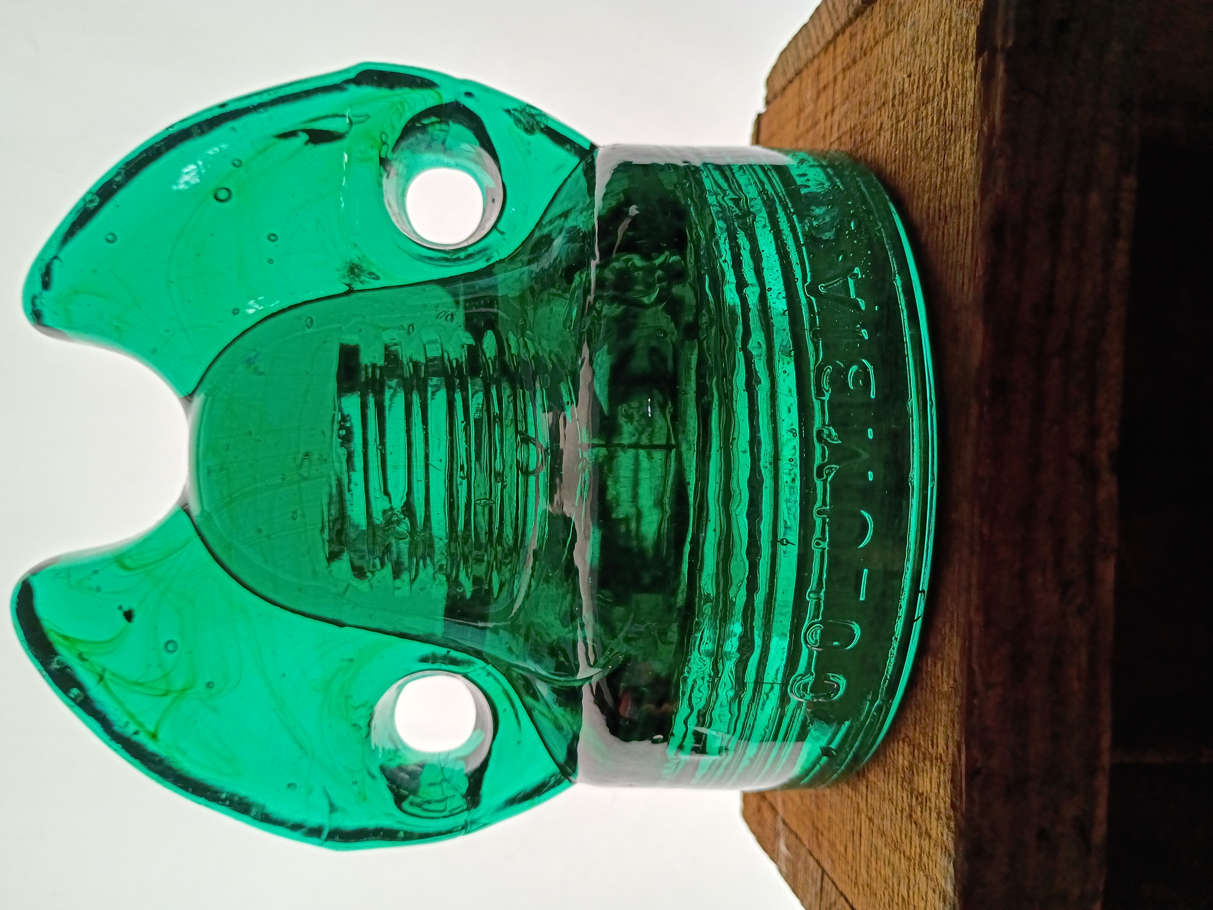 This CD 263 Columbia is really pushing the color green. There is a nice bubble and some pretty good amber also. Extremely shiny, probably tumbled. There are 3 bb dings, and an annealing line in one ear. 185, plus S&H