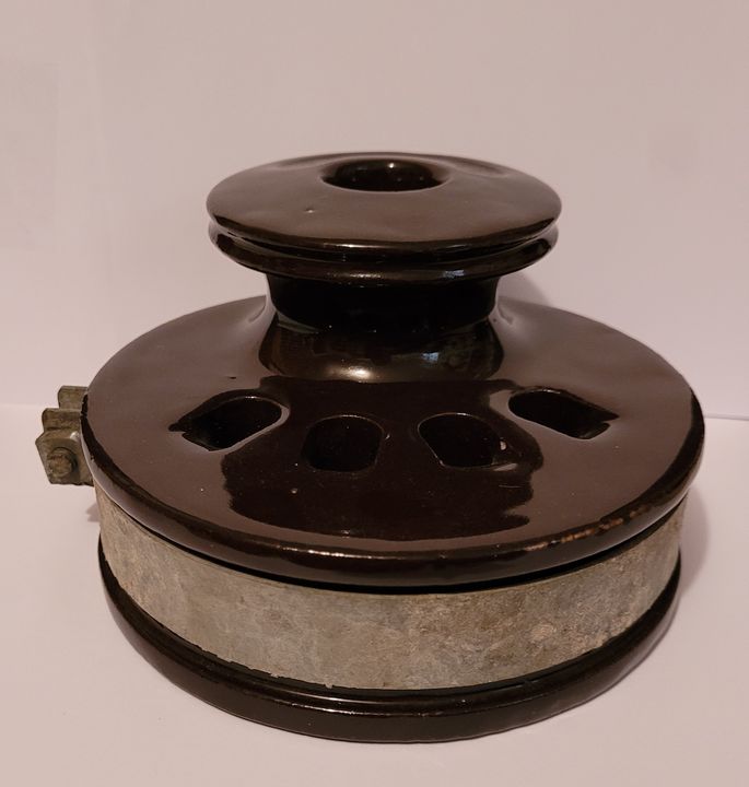 A beautiful (pencil holder nickname). Spool insulator. Tough piece this one has firing rests on bottom white spots. See the 3 pictures. Also has the original band around it! $75.00 includes shipping in lower 48! PayPal f&f.