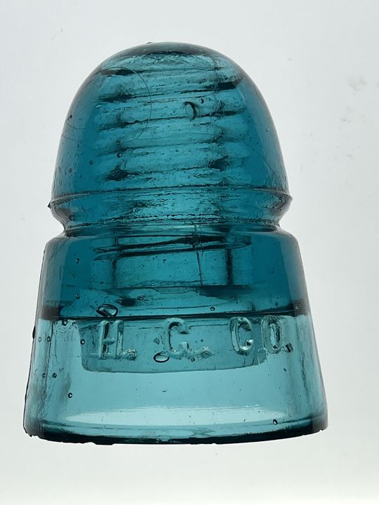 This has to be the darkest Hemingray Blue H.G.CO. B hive I've ever owned and from my collection and I've had hundreds of these, but the only one this DARK! It stands out in a cloudy day. CD 145 H.G. CO. beehive telegraph insulator Front skirt embossed: H.G. CO. Top of dome embossed: Small " H " Smooth base Uusual Darker Hemingray blue Vnm condition, minor flakes on base PayPal Friends and Family $XXXV shipped. Photgraphed on a LED light Tablet |