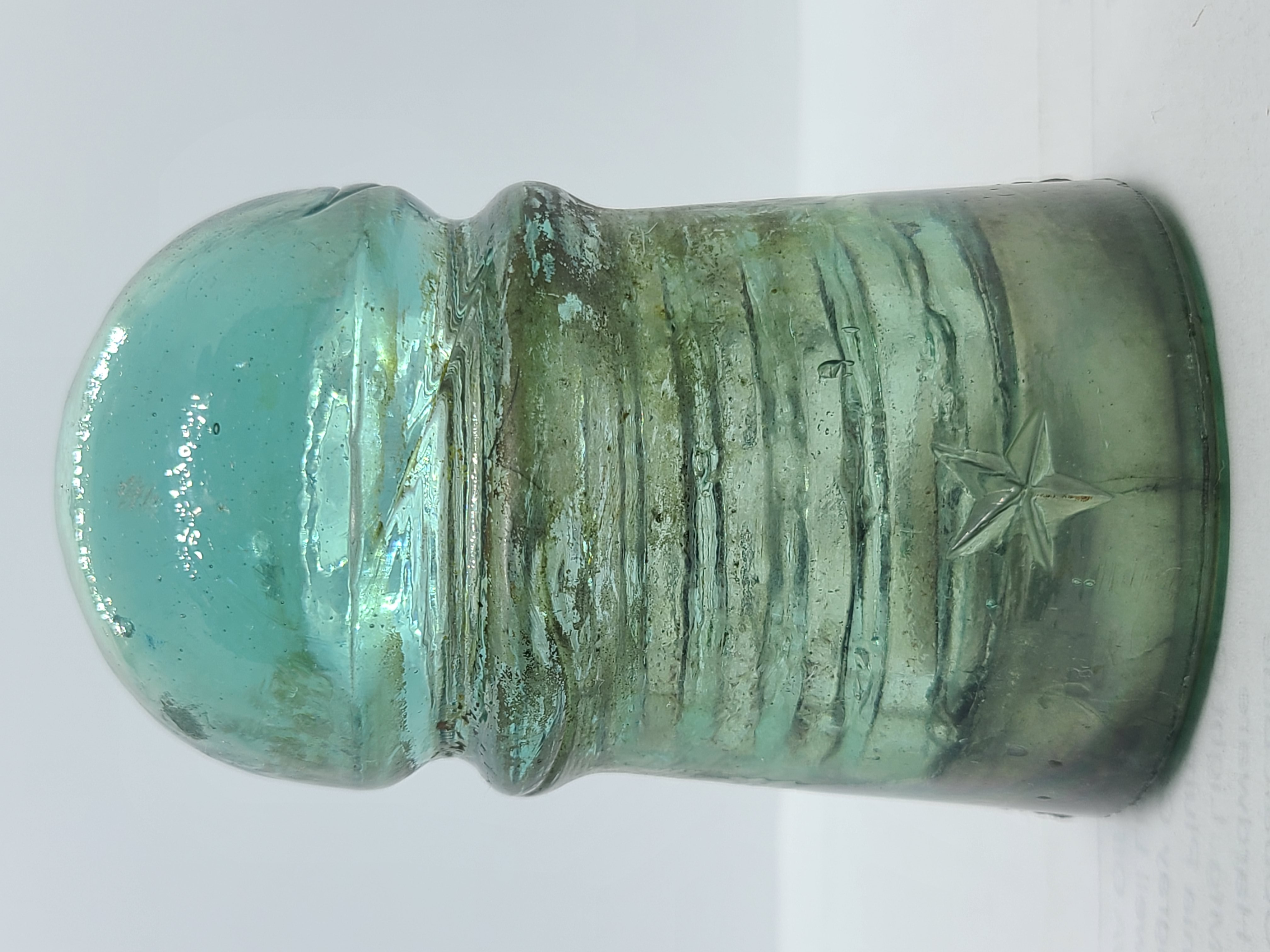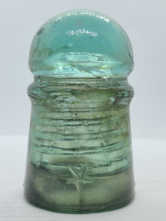 Neat pony with the original patina. I'd say the color is light aqua, closest in the guide is light blue, so might be a new listing. Has a thin base chip about 1/4 of the base and a tiny flake also on the base, both are old chips as the soot is in them, maybe done when installed? I can send more pictures if needed. Asking $16 and $8 for shipping. |