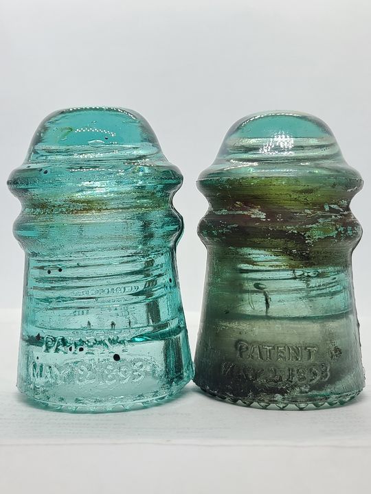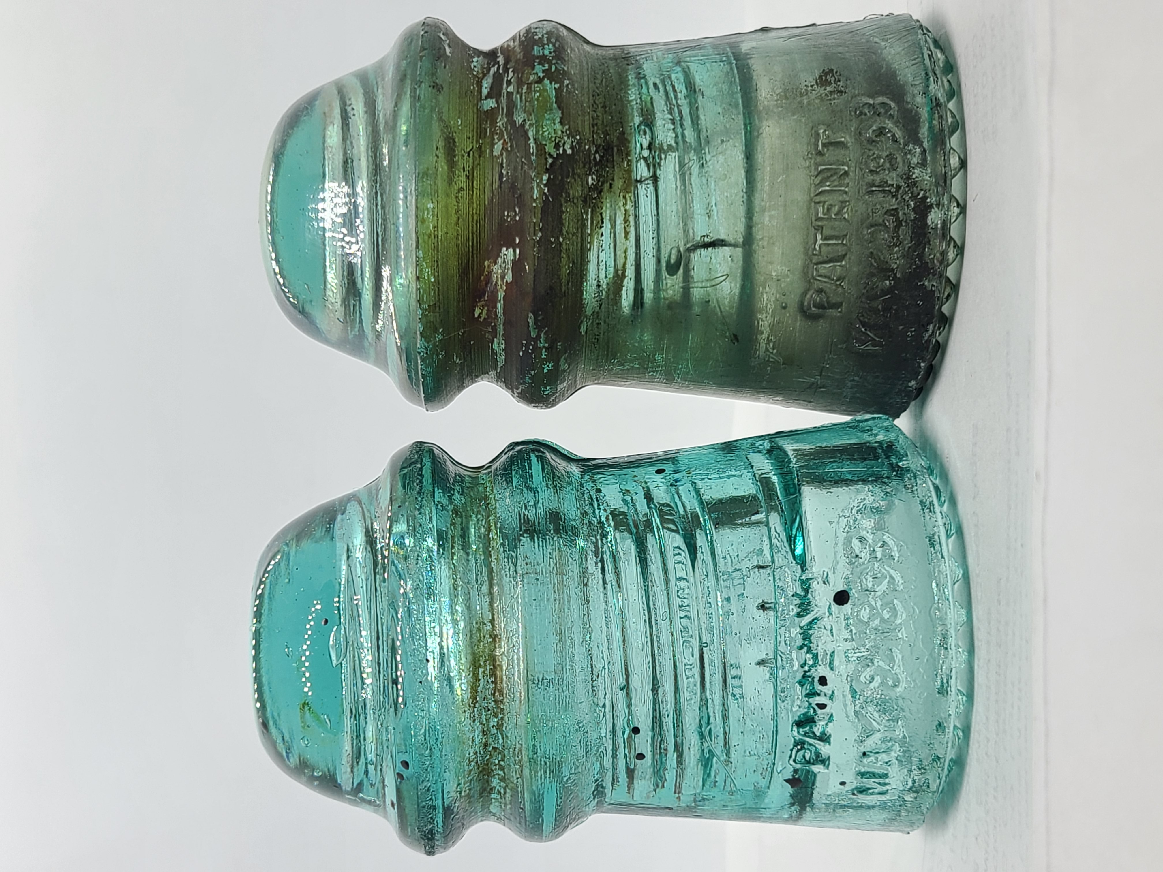 Two CD 106 Hemingray's, not stamped embossing, back view.