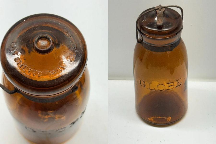 As a follow up to my 2020 post [id=609440788] I have since found one in amber: (Top of lid - Counterclockwise) PATENETED MAY 25TH 1886 {Note spelling} (Underneath Lid - Center) 4 {Number is backwards so it is viewable through the center of the lid} It appears to be from the same mold, so I would guess the back plates were used interchangeably, as my other one does not have a number 4 on the back. |