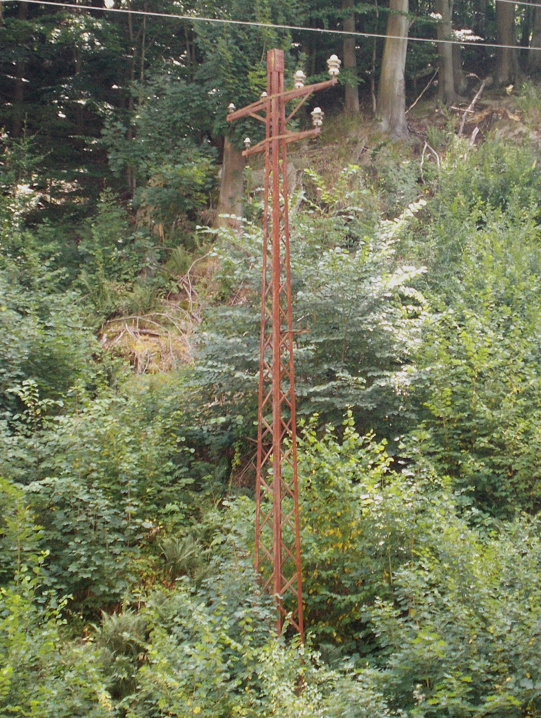 Western Poland is a museum of old transmission towers which were built before 1945 when this area was part of Germany. This disused pole in Lesna/Marklissa already existed in 1907 and served the voltages of 40kV/10kV, but the upgrade to 40kV happened later, before 1925. Today around Lubomierz some of these poles still exist, but as part of the 15 kV distribution grid. Original state 1905-1907: https://fotopolska.eu/1051872,foto.html?o=b13122 There is another one in service, close to the protection bridge: https://maps.app.goo.gl/afaamjtDjsoDv6Wi8 Map of power grid in 1925: https://polska-org.pl/813974,foto.html?idEntity=509944 |