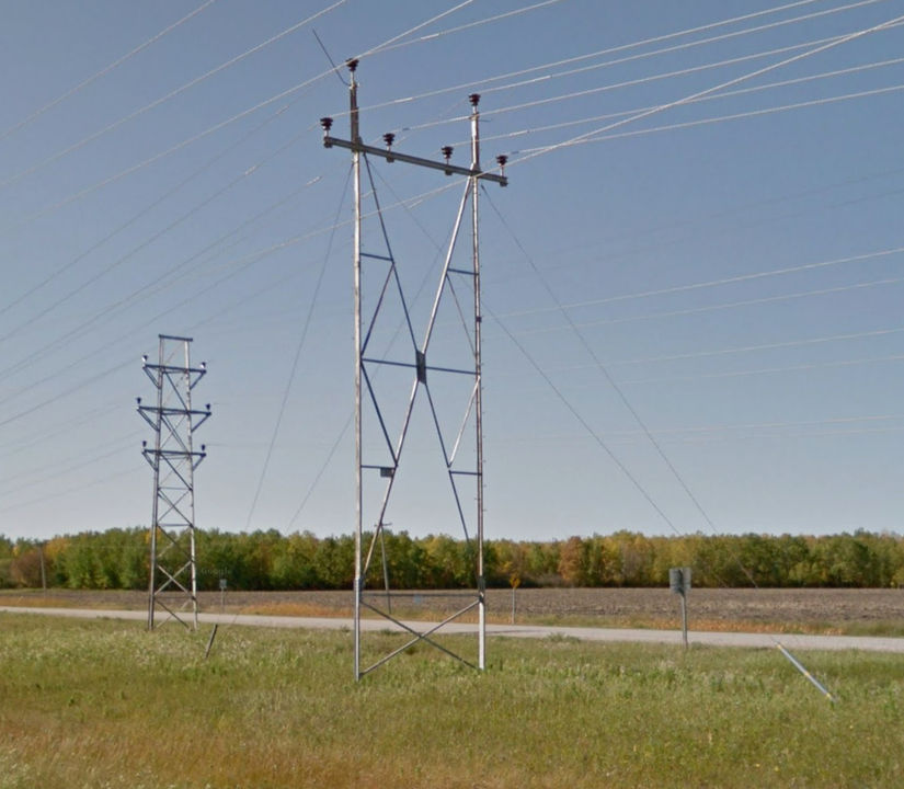 This power line is built on interesting two-dimensional transmission towers, only the anchor towers are rectangular. Note the triangular towers in the background, too. North from Lac du Bonnet town are a few original towers, around Winnipeg the old towers have been replaced. https://reference.insulators.info/publications/view/?id=3649&h0=lac&h1=du&h2=bonnet |