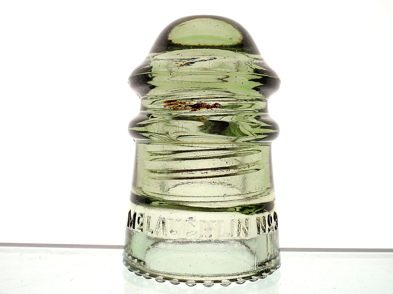 Green swirl in a McLAUGHLIN insulator! YES! Strong yellow olive with that bright green stripe across the dome area. MINT!! $ 95.00 includes shipping.