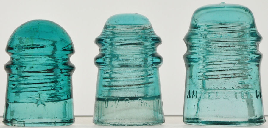 Left to Right: CD 102 STAR [050] Blue Aqua, no damage to report CD 106 O.V.G.CO. [010] Light Aqua, no damage to report CD 121 AM TEL & TEL CO [095] Bluish Aqua, raised dot on the dome, no damage to report Asking $35 for all including shipping and insurance in the USA I accept money orders, checks, or PayPal – Friends & Family. |