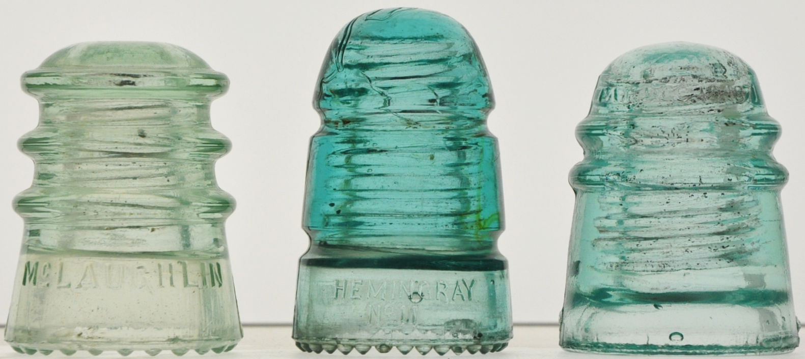Left to Right: CD 115 McLaughlin [050] Light Green, no damage to report CD 114 HEMINGRAY [010] Aqua, small no glass missing bruise under "PAT" in "PATENT" CD 120 PATENT - DEC. 19, 1871 [020], Light Aqua, one flea bite and a small light wire groove scuff Asking $50 including shipping and insurance in the USA I accept money orders, checks, or PayPal – Friends & Family. |