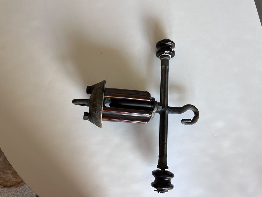 Any thoughts on this item. The top and base are very old but the hex nuts and internal star lock washers are newer. The base has an embossed B. Both the top and bottom show signs of wear. Please see photos and let me know your thoughts. Thanks, Connie Dueker |