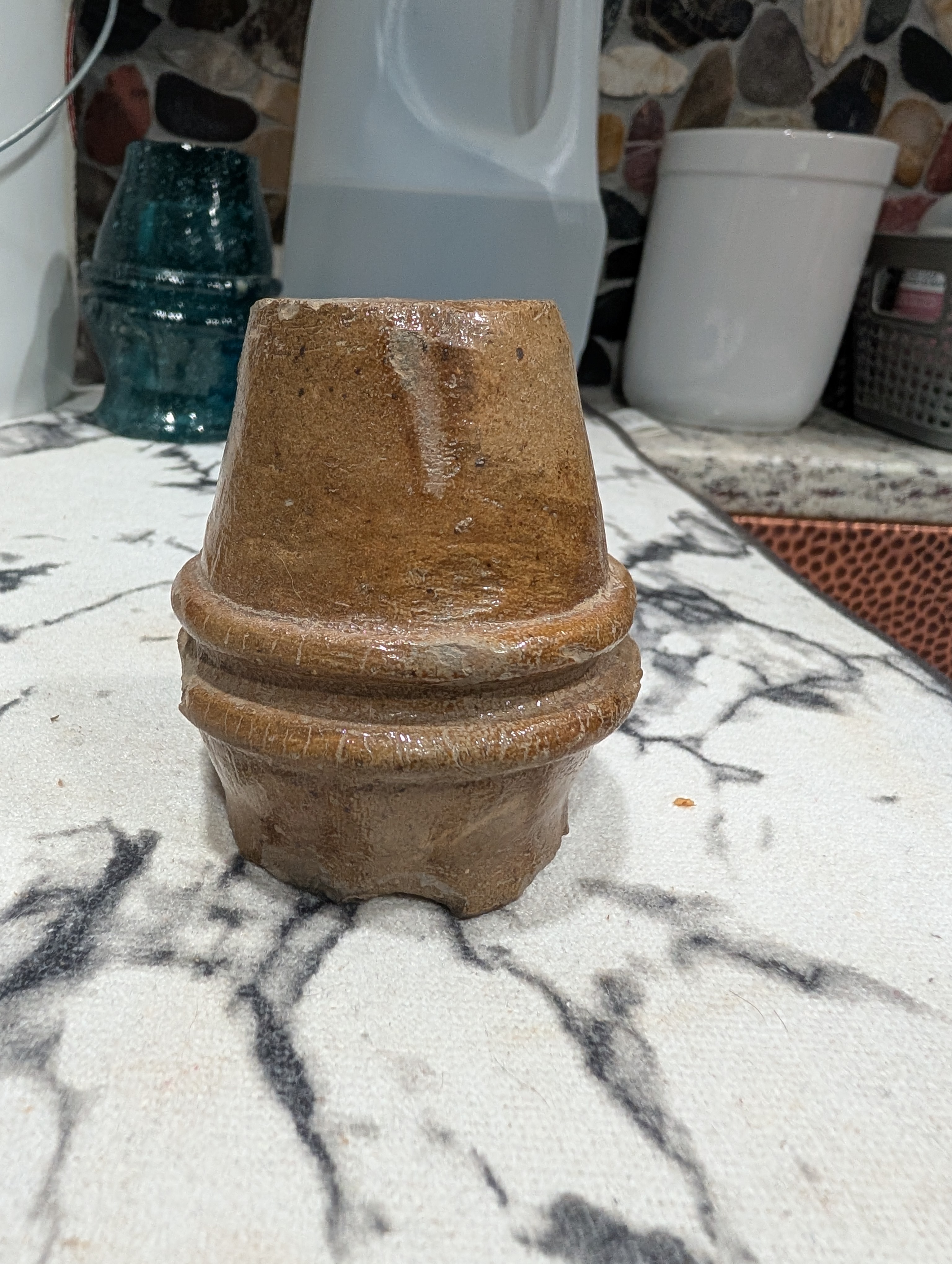 Here's a great piece of history and found in Virginia years ago with civil war book Providence. Does have some base chipping but what a great example of a scarce piece with far fewer than its glass counterpart. $650 plus shipping in the US.