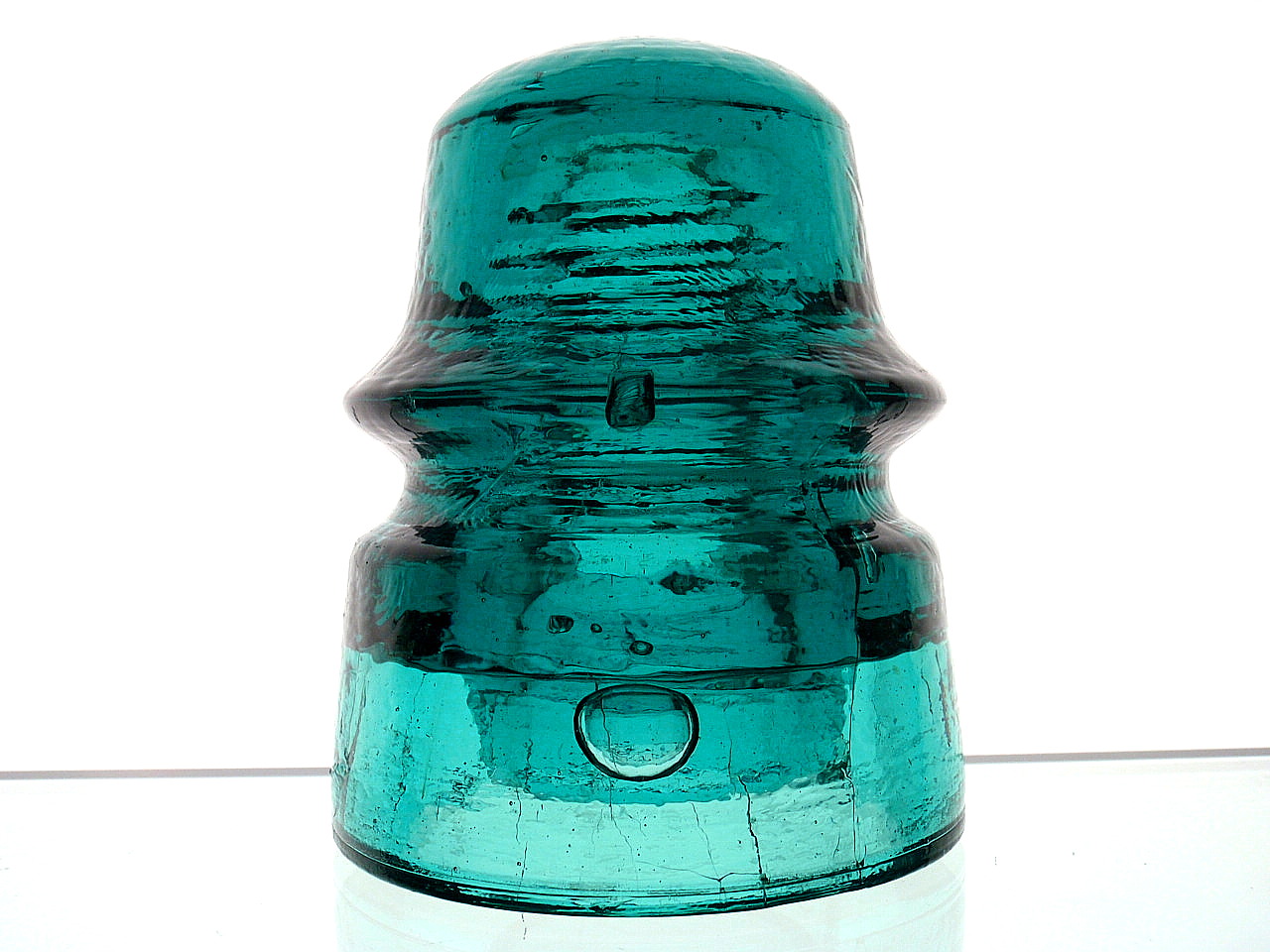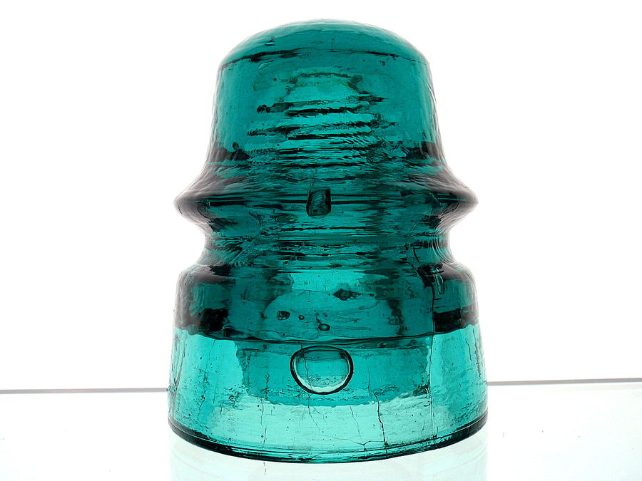DARK DARK TEAL!! Three pencil lead point ticks and a short 7/8" vertical annealing skirt line next to a big bubble are the only flaws!! $ 65.00 includes shipping.