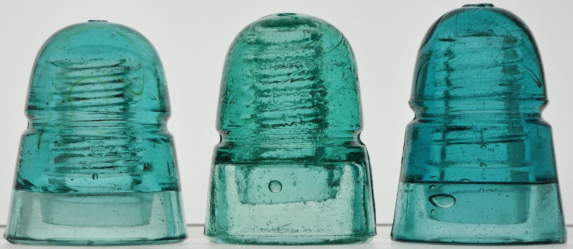 Left to right: CD 145 B [035] Aqua with light amber swirling, "4" on the dome and the rear skirt, no damage CD 145 BROOKFIELD [230] Greenish Aqua, Large backwards "7" on the front crown on top of a small "7", no damage CD 145 NO NAME [010] Hemingray Blue, no damage Take all three for $40 shipped in the USA I accept money orders, checks, or PayPal – Friends & Family. |