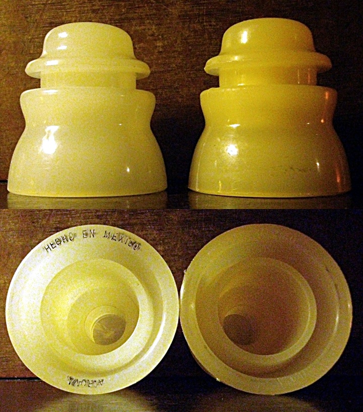 The next piece is of Mexican origon as well. I had a CD 155 lookalike I purchased at the Gettysburg national the other year, but this piece in this collection was a different shade than the lighter piece I had. So it's all good. Both pieces are marked Hecho En Mexico Airova on the bottom skirt edge. I had darkened in the embossing on the piece I already had to show the embossing. I have no idea who made them. They screw onto a standard American 1" pin. |