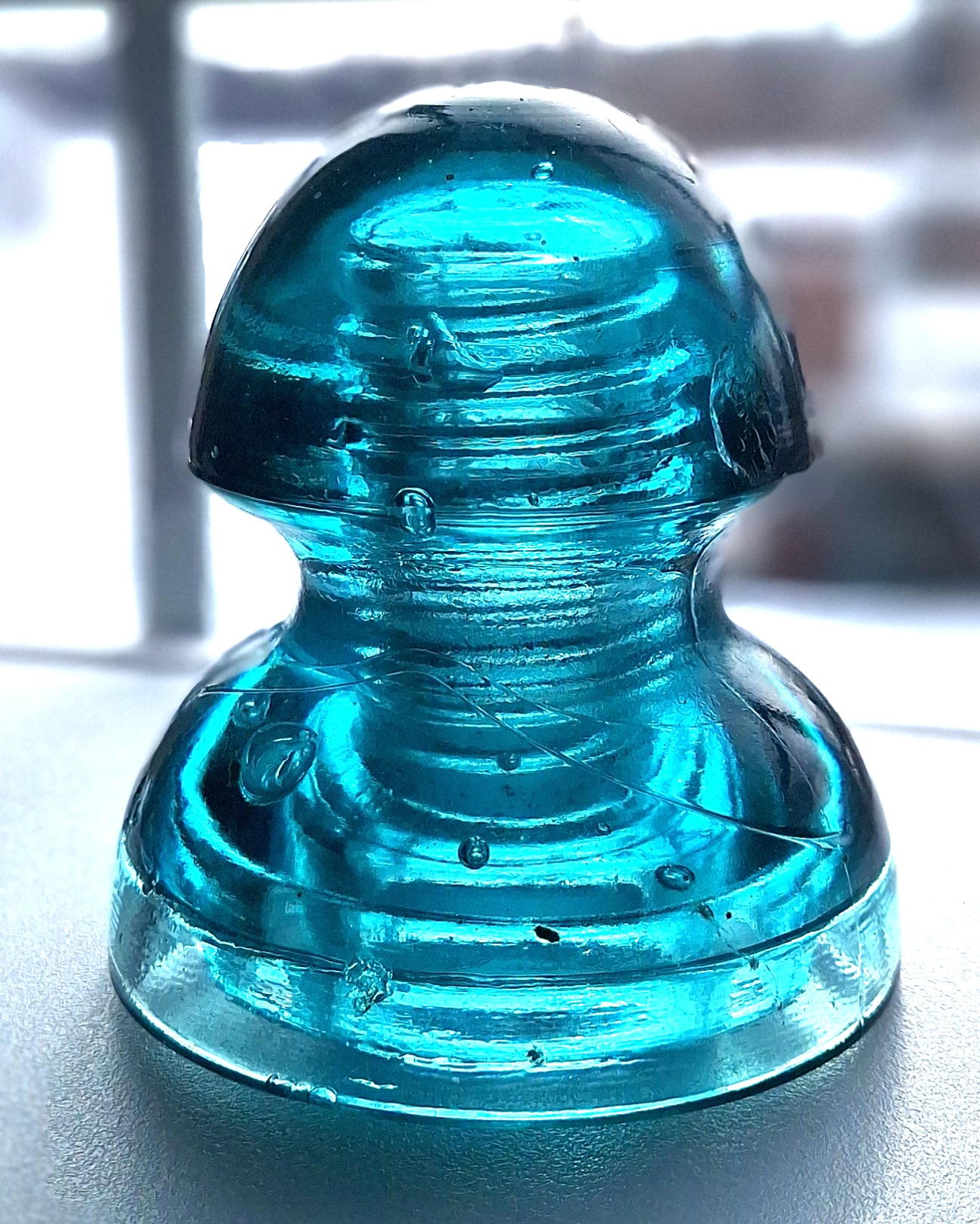 Just the usual lehr kiss on dome and one smaller one on skirt that can be seen in the pic. One other 1/8" nick on skirt near the base, a 3/8" no glass missing bruise on inner most skirt, and two short, very light skirt scratches mentioned for accuracy. All very minor for this damage prone style. Nice bubbles! More pics if needed. $160 shipped in U.S. |