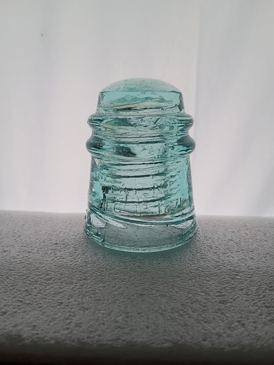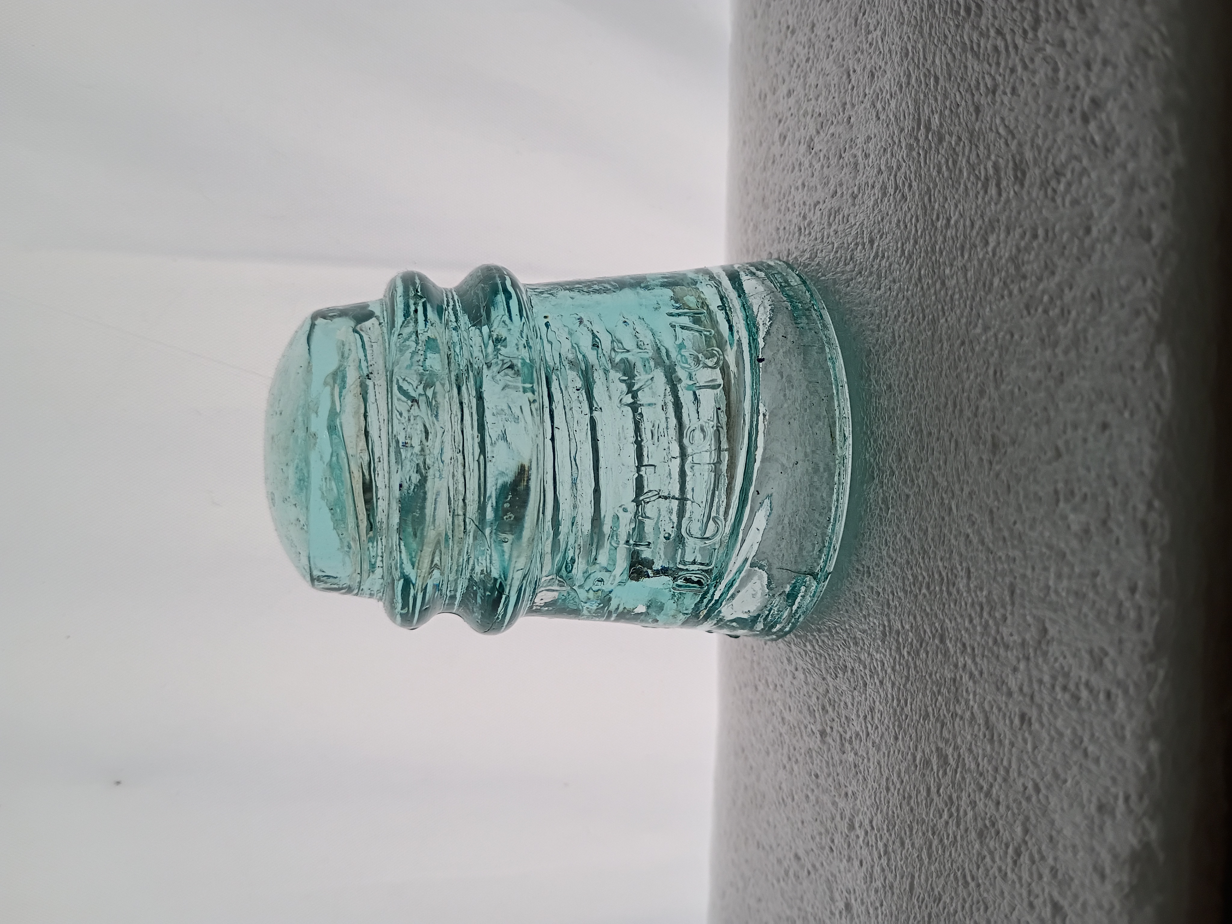 Here is a pretty powder blue CD 120 Patent 1871, #5 on back. There is a factory open bubble at base. Large one inch skinny bubble under wire ridge at mold line adds character. No real damage to mention. 35, plus S&H
