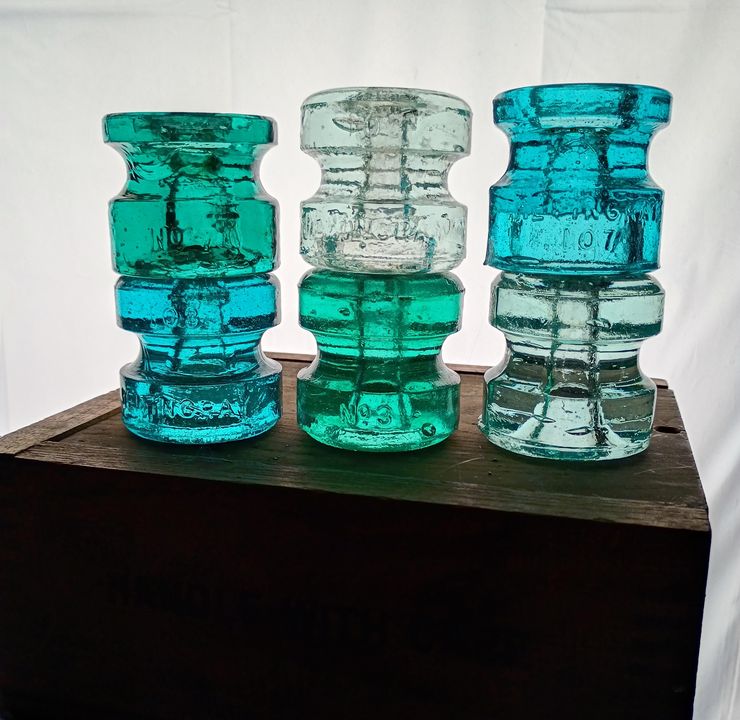 Here is a great group of 6 spools. All of these are in fantastic condition with just the typical roughness at the pinhole openings. One of these seems unlisted and Hemingray made as it doesn't fit in with any of the size descriptions in the guide. The wooden box comes with these. It appears to be a old lockbox for valuables. Tag on side of box says Railway Express. The six will be packed in this.....and all will then be packed in cardboard box. Asking 175, plus S&H |