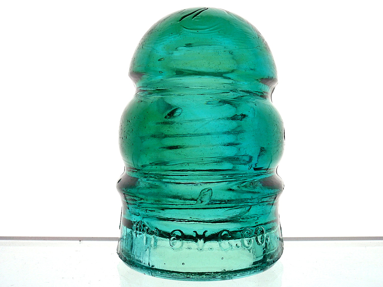 Rich tealy aqua with some amber blush throughout. One needle point tick and a side body matchead size paperthin lehr kiss are the only flaws!! $ 50.00 includes shipping.