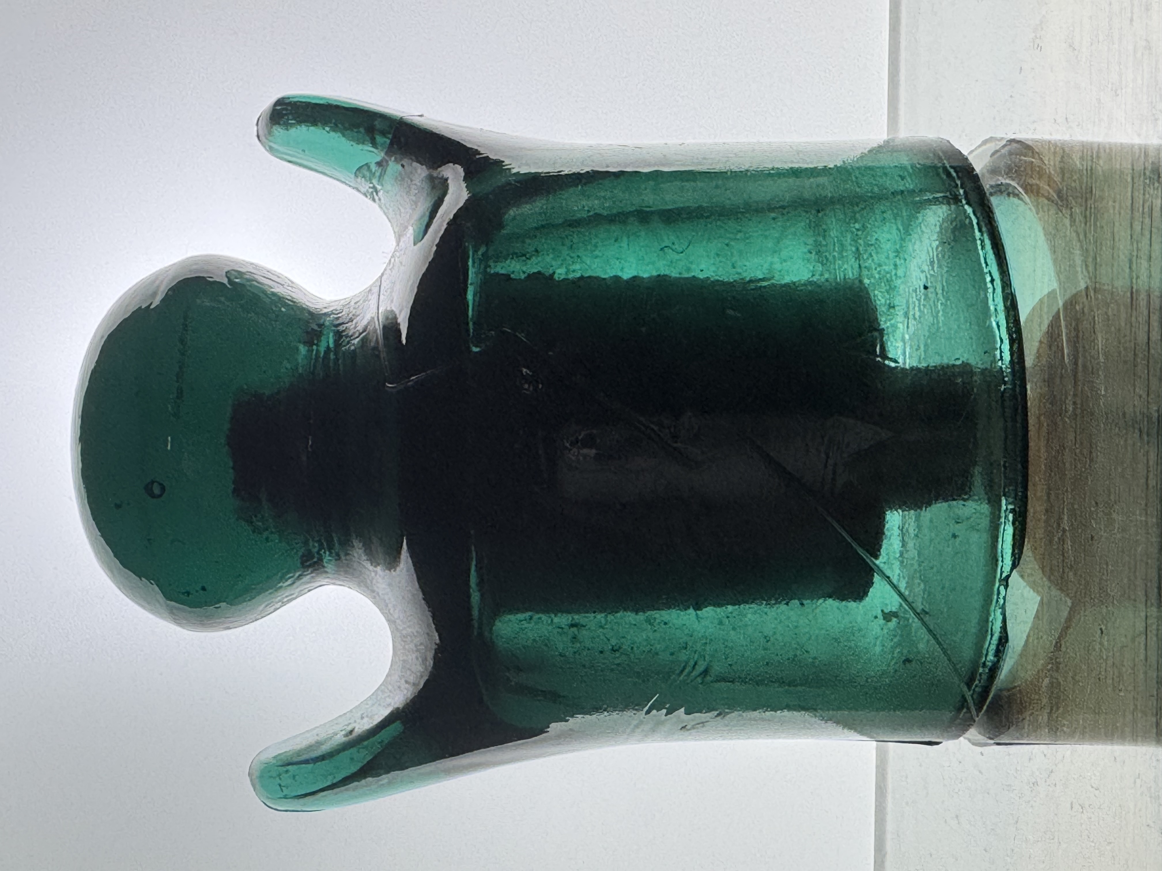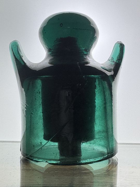 Gingerbread man 640 VA marked. Sadly this teal gingerbread man got beat up in transit from Hawaii of all places. Broken arm has been glued back on but he still has a small base sliver as shown.