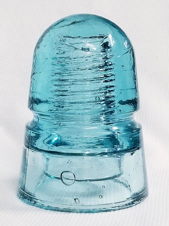 CD-145 Base Embossed THE STANDARD GLASS INSULATOR CO BOSTON MASS - PIC1 - light blue-aqua, shiny shimmering clean glass with a few bubbles and extra fine threads. Has a 1" long by 1/8th" shallow surface horizontal fracture at the bottom wire groove edge that is practically invisible as displayed. And one shallow 1/4" base rim outer edge flake that does not affect embossing. A tough New England beehive with classic BOSTON embossing in fabulous condition. $400 Shipped to lower 48. I prefer PayPal F&F and accept Zelle, Cashier's Check, Personal Checks (if we've done business before) Thank You!!! |