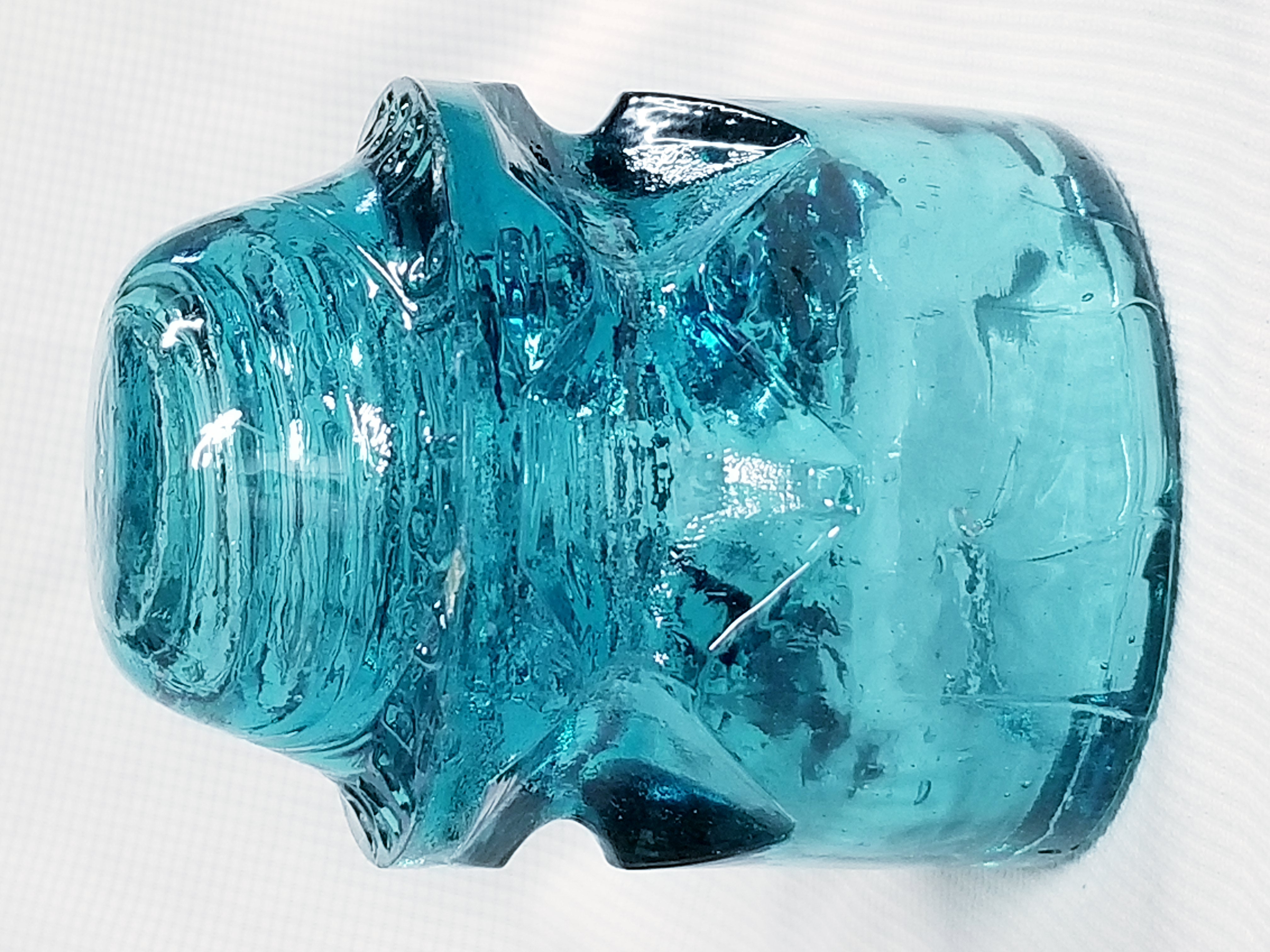 CD-135 Shoulder Embossed CHI INS CO PATd OCT 16. 1883 - PIC2 - medium blue-aqua, shiny shimmering clean glass with a few bubbles, creases and slight underpour. Has only a few tiny shoulder rim nicks and tiny manufacturing flakes that are intact. Very minor manufacturing flaws all located on the 1883 edge and none of which affects the BOLD embossing. A clean, shiny, crude diamond groove in fabulous condition. $100 Shipped to lower 48. I prefer PayPal F&F and accept Zelle, Cashier's Check, Personal Checks (if we've done business before) Thank You!!! |
