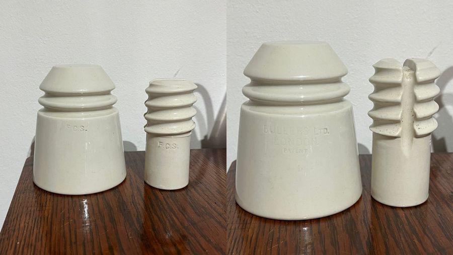 Hi everyone! This is a rare offer and scarse U-1929A porcelain Sinclair Aitken Patent insulator from the UK, but made for use in Argentina by the FCS (FerroCarril Sud or South Railway in english). Incuse marked "Bullers LTD. London Patent" on the front and FCS on the back. Comes with the original hard to find threaded inner skirt in the form of a porcelain pin which are usually missing (is in great condition), and also is incused "FCS". Measures 85mm (about 3 1/2") wide by 105 mm (about 4" tall). The price of this Mint insulator is $180 with shipping included to the USA. (I`m from argentina, not cover to remote areas, that might be a little extra charge). I can only accept PayPal in goods and services (because being latinamerican) so I may add 5% of fee charge. If you want more photos or videos just let me know. First e-mail gets it! also you can contact me on FB: Pablo Daniel Sueldo, we might have some friends in common! SOLD! |