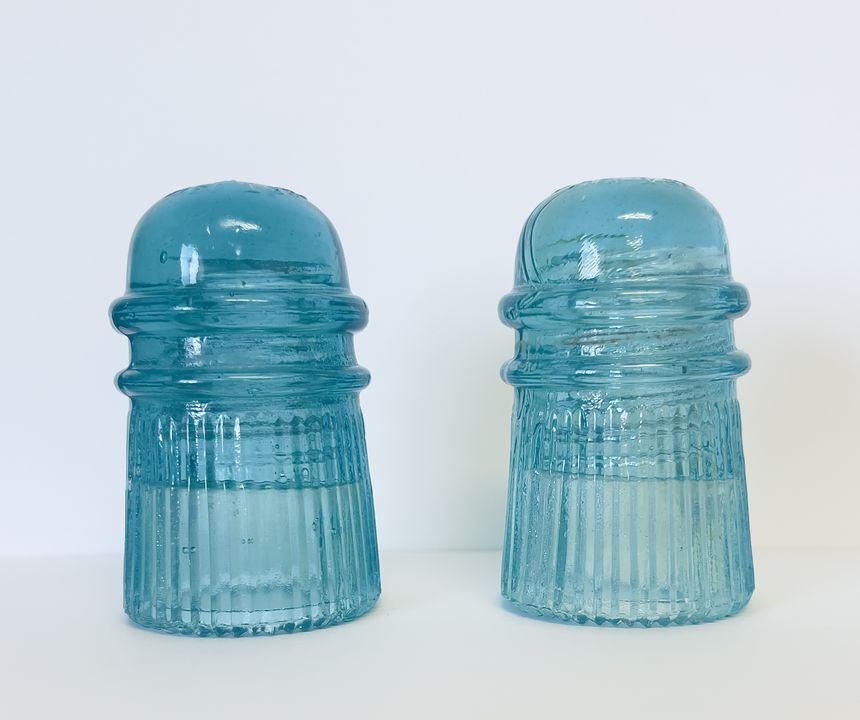 Both are Very Near Mint or better condition. As you can see they are 2 different shades of color. The right photoed one has a tad of amber in the dome and a small under pour on the skirt not shown in the photo. $70 to your door for the pair! Thanks. Dave |