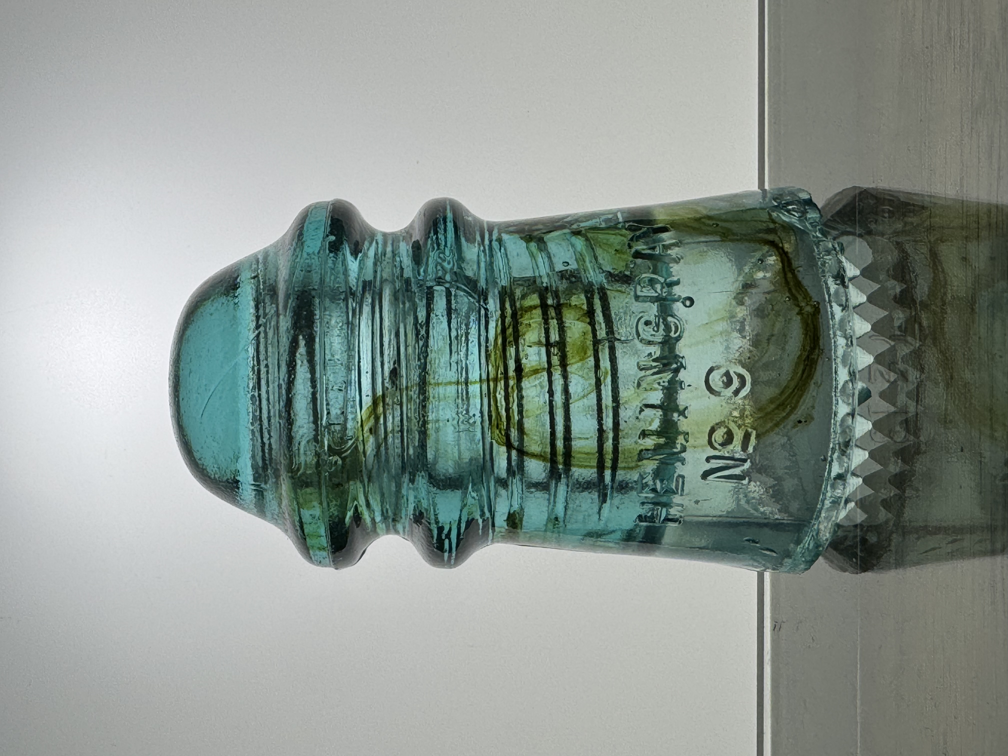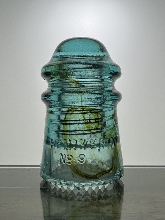 Hemingray CD 106 loaded with amber! Very well placed swirl. Does have a chip as shown. No other damage.