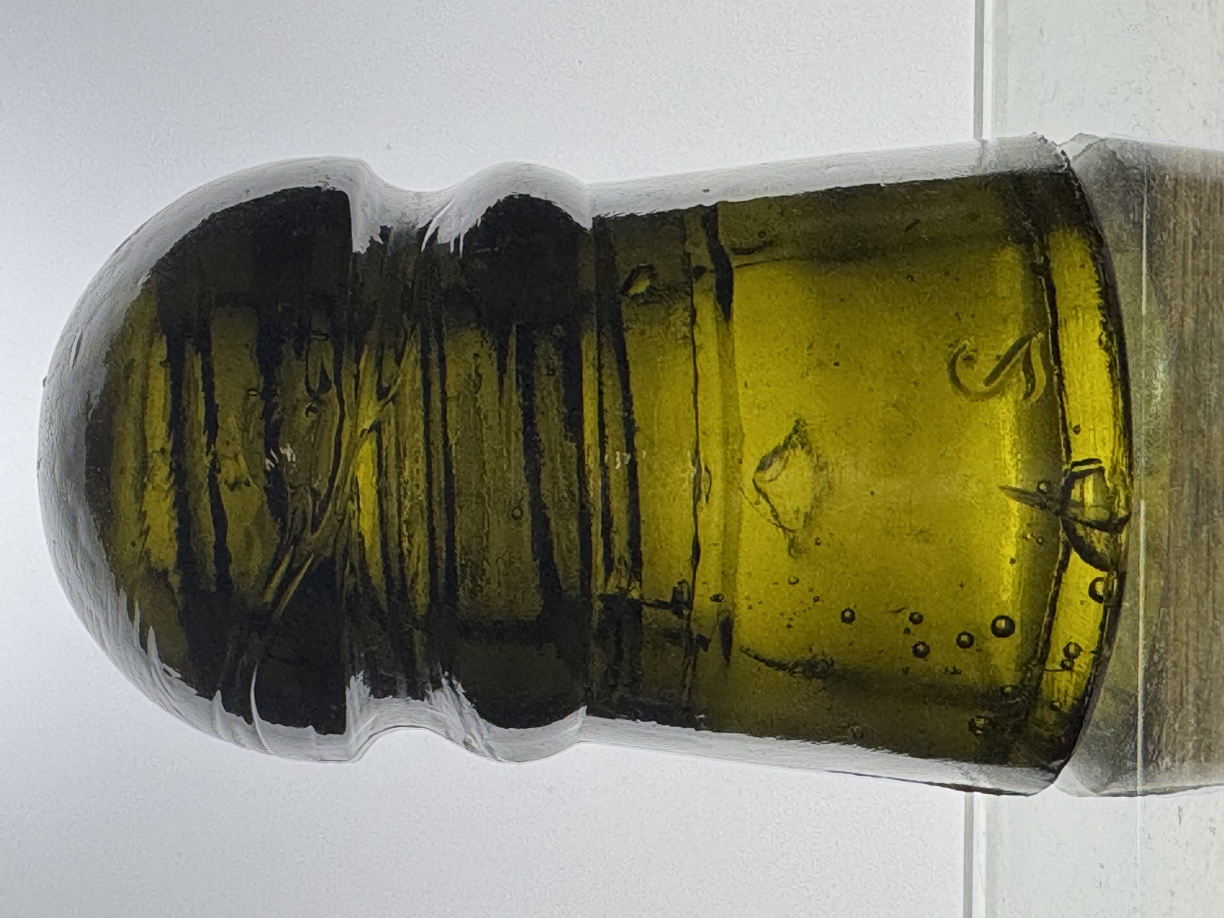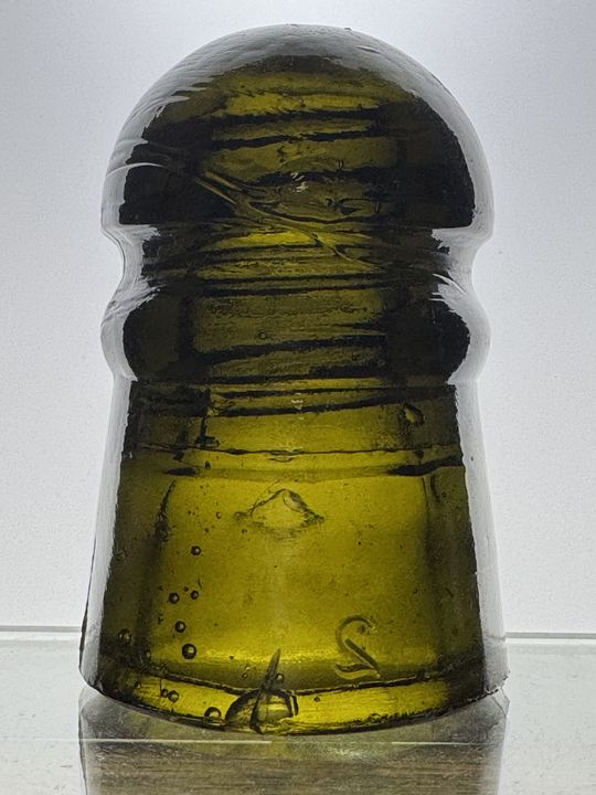Olive diamond with backwards 2 On reverse has a tiny Lily stable fracture on base cutting right through a bubble about 1/4" or less.