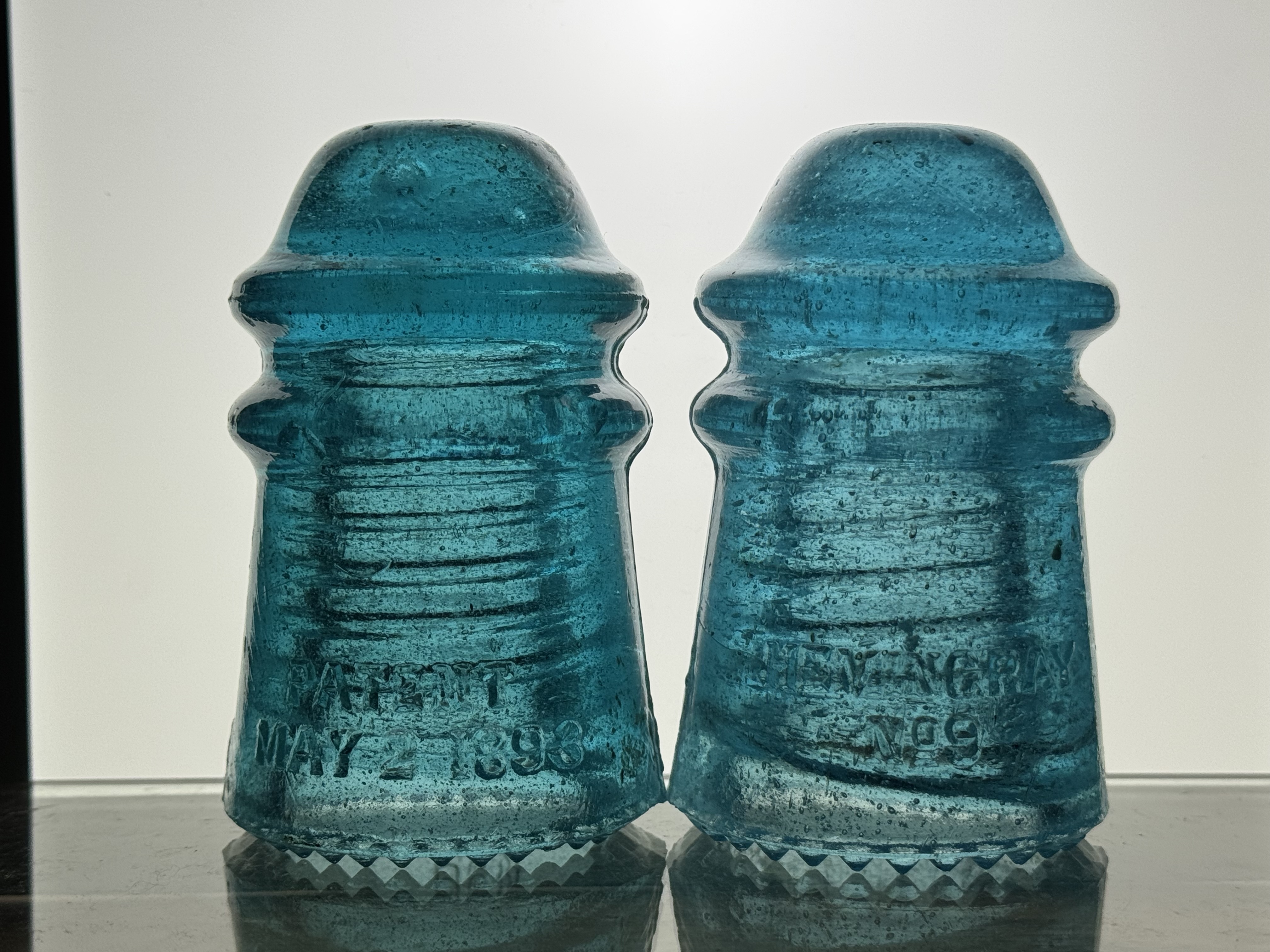 One has a couple teeth damaged, 1/4" flake out of the wire ridge and a couple BB marks on the front. Other has 1/4" smooth flake on base removing half a drip.