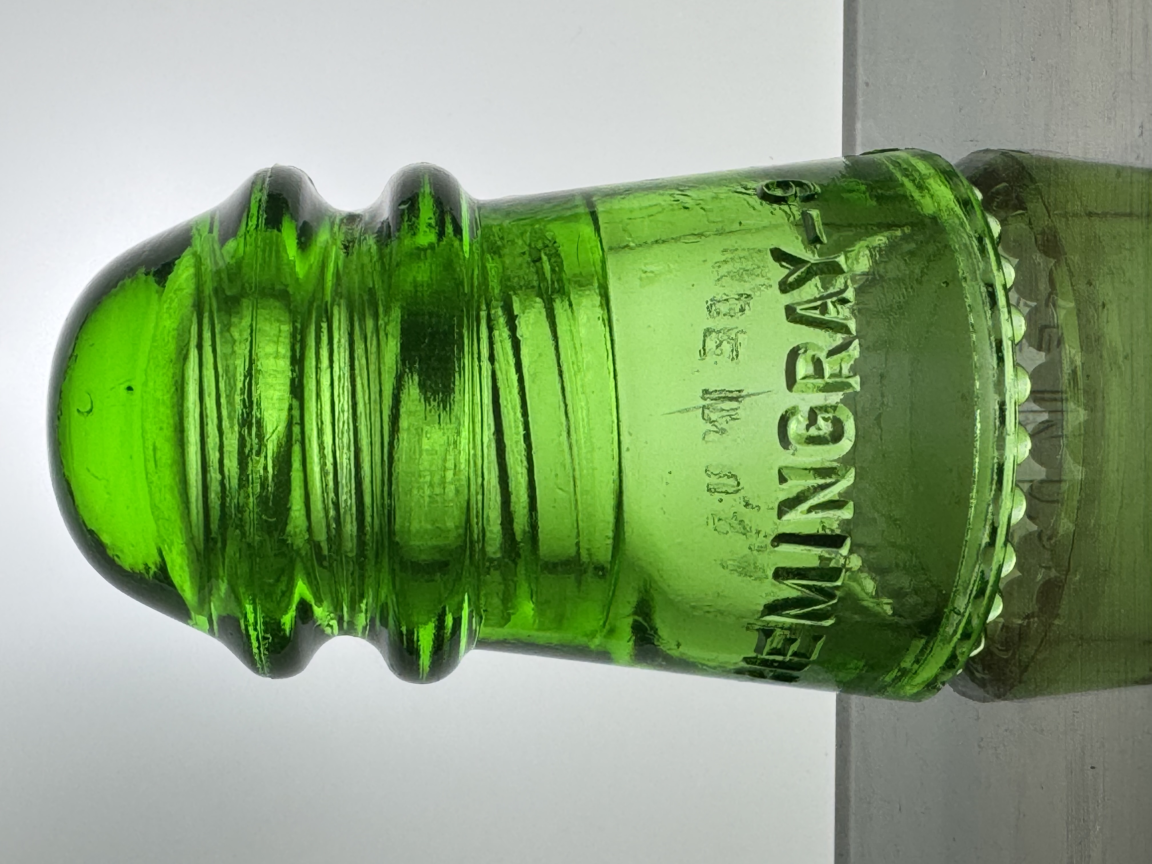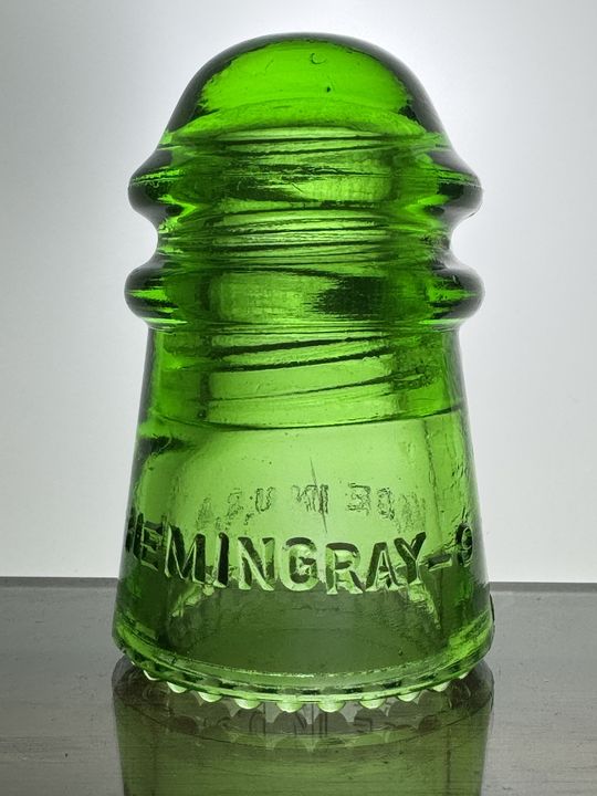 This piece radiates light. While it doesn't literally glow it is a glower. Brighter than the typical 7up green and has the dead clear streak through USA associated with this color.