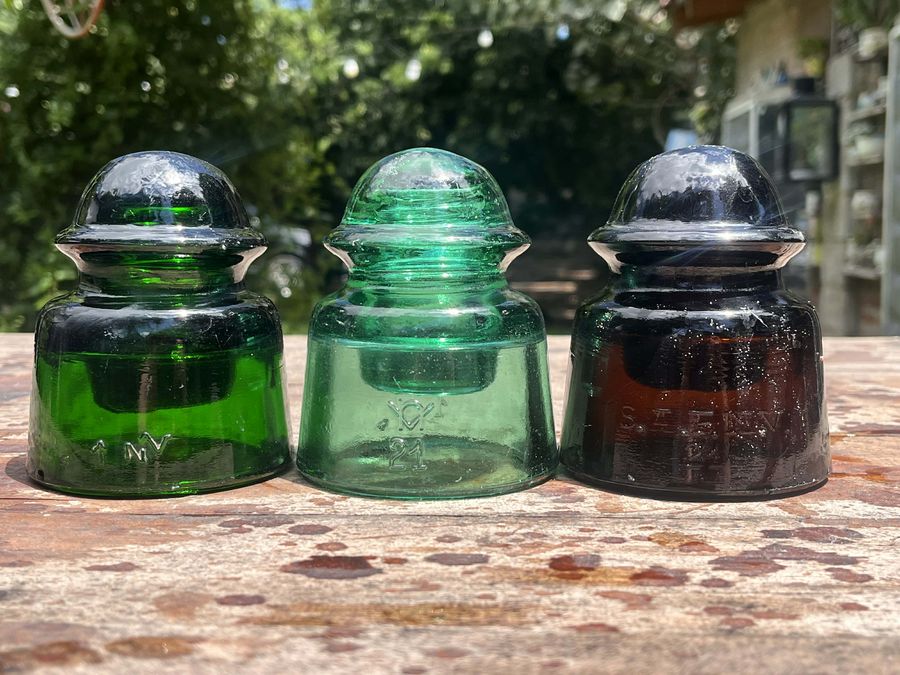 SOLD Hi everyone! In this opportunity, I'm offering three different CD 502 insulators from Uruguay, each in a distinct color and embossing variation. • First: NV raised logo in a beautiful deep 7-Up green. • Second: The rarest of the three — the unique embossing with the "N" combined with the "V," forming a small figure that looks like a man with his hands raised. This one comes in a lovely light aqua color. • Third: Yellow amber with the more common SAFNV embossing. I'm asking $180 shipped to the USA (shipping alone is approximately $50, so it's a great opportunity). PayPal G&S only. Feel free to contact me by email or Facebook if you'd like more details, photos, or have any questions. Thanks for looking! SOLD |