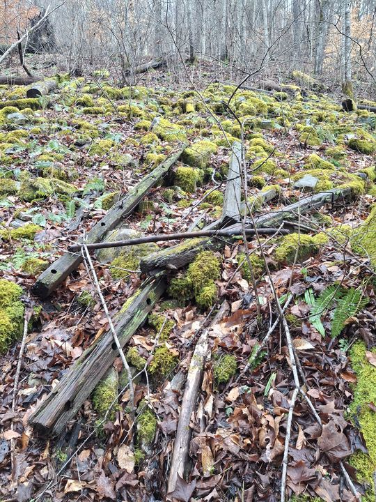 Empty crossarms were under every pole. The openwire removal crew did a very good job at burying nearly all of the insulators.