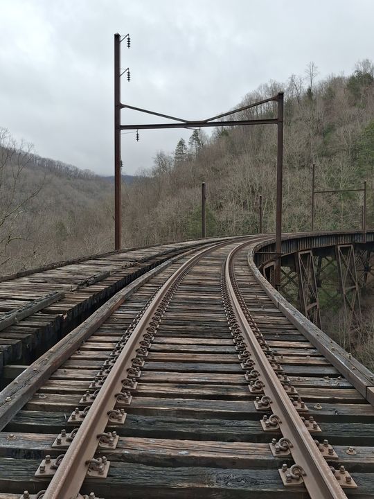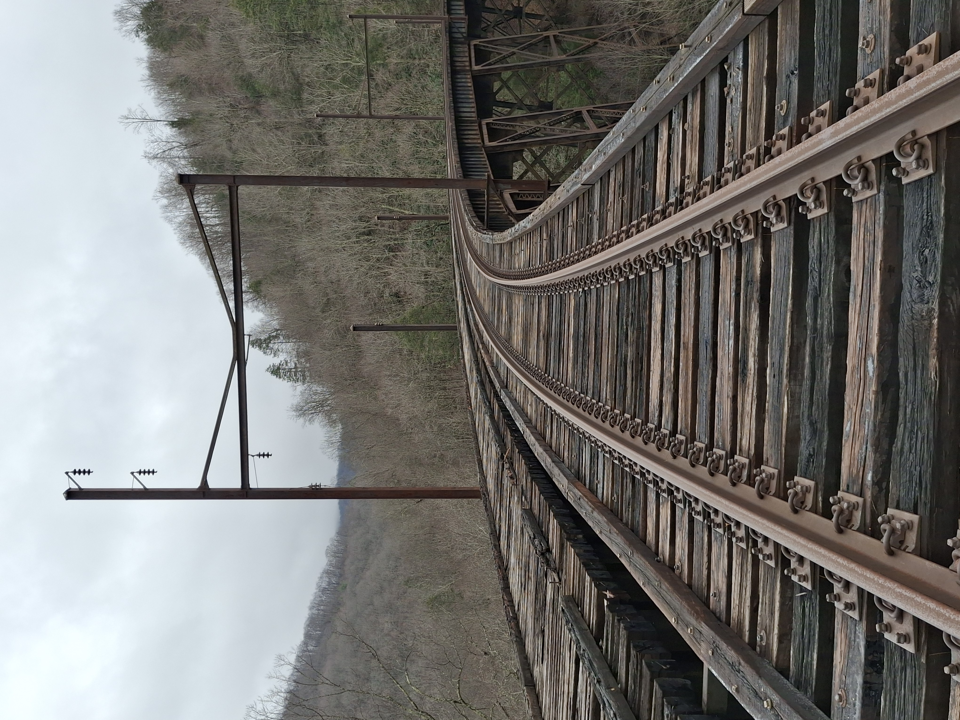 Long abandoned catenary structures from when the line was electrified.