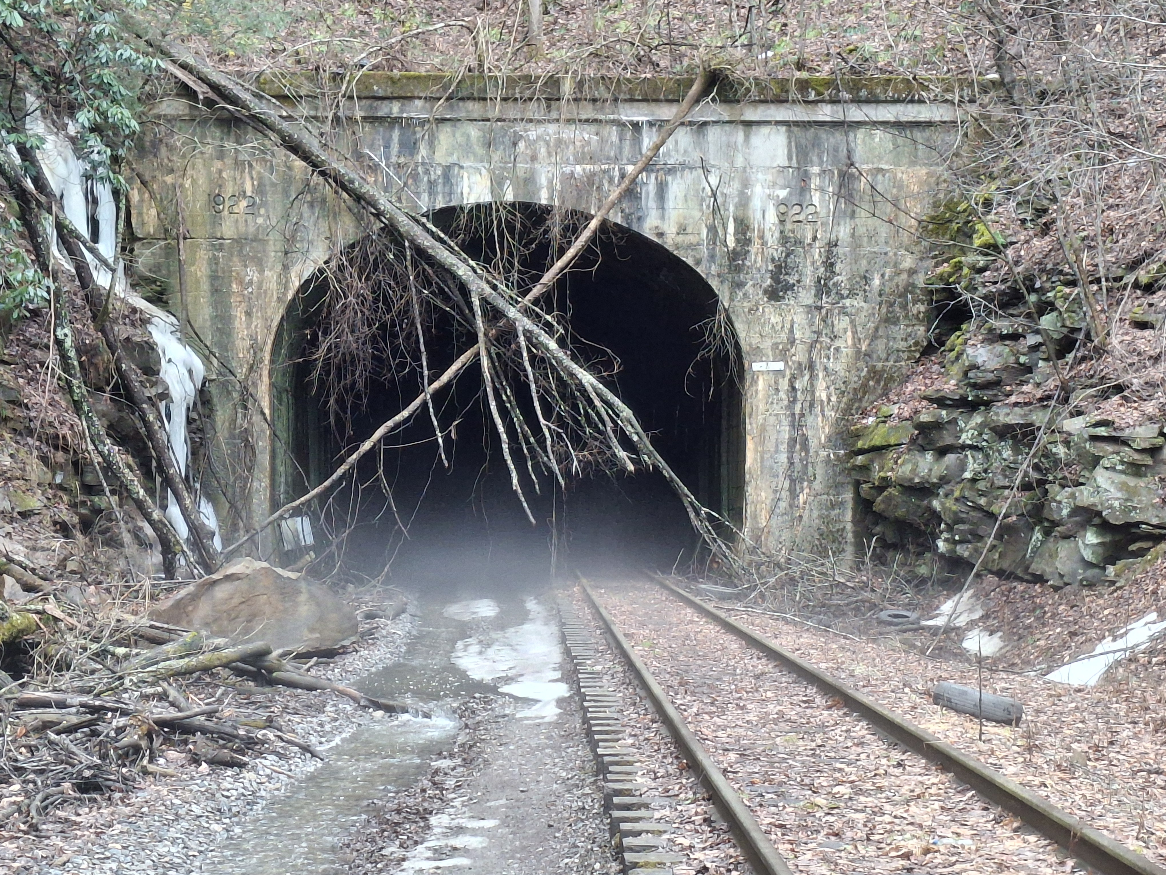A much longer tunnel. Mist shrouds the entrance.