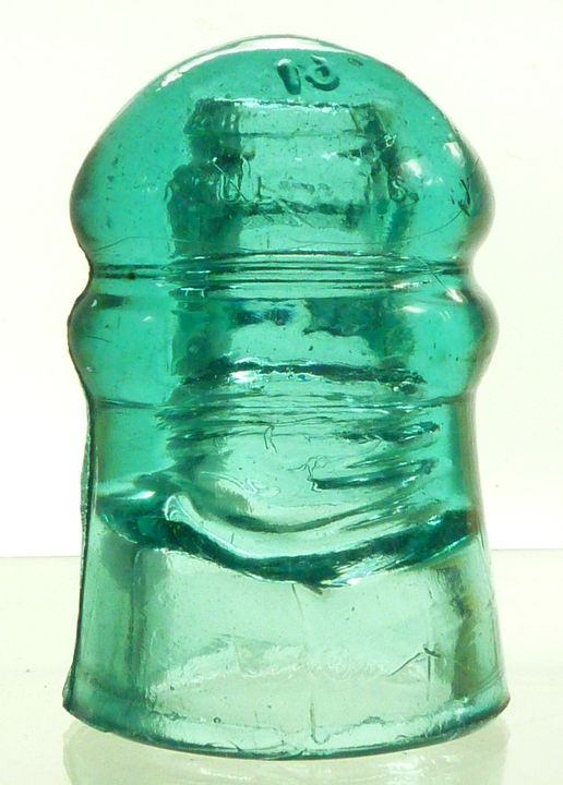 CD 126 W. BROOKIFIELD blobtop telegraph insulator. Front crown embossed: 16 / W. BROOKFIELD / 55 FULTON ST. N.Y. {NOTE THAT THE " 1 " IS NORMAL, BUT THE " 6 " IS BACKWARDS AND ENGRAVED A LITTLE HIGHER} Rear crown embossed: PAT. FEB 22ND 1870 / JAN 25 1870 / JAN 14TH 1879 Smooth base AQUA glass MOLD LINE OVER DOME CHECK OUT THE CONTORTIONS IN THE BOTTOM OF THE THREADS !!!! Stock #a3788 $10.00 + shipping |