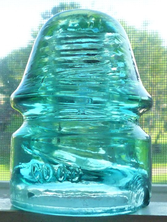 CD 134 GOOD signal insulator. Smooth base. Lt. bluish aqua. Overall nice condition. Has a small thin vertical flake on skirt to the right of GOOD ( SEE PHOTO).. Otherwise no other defects to note.